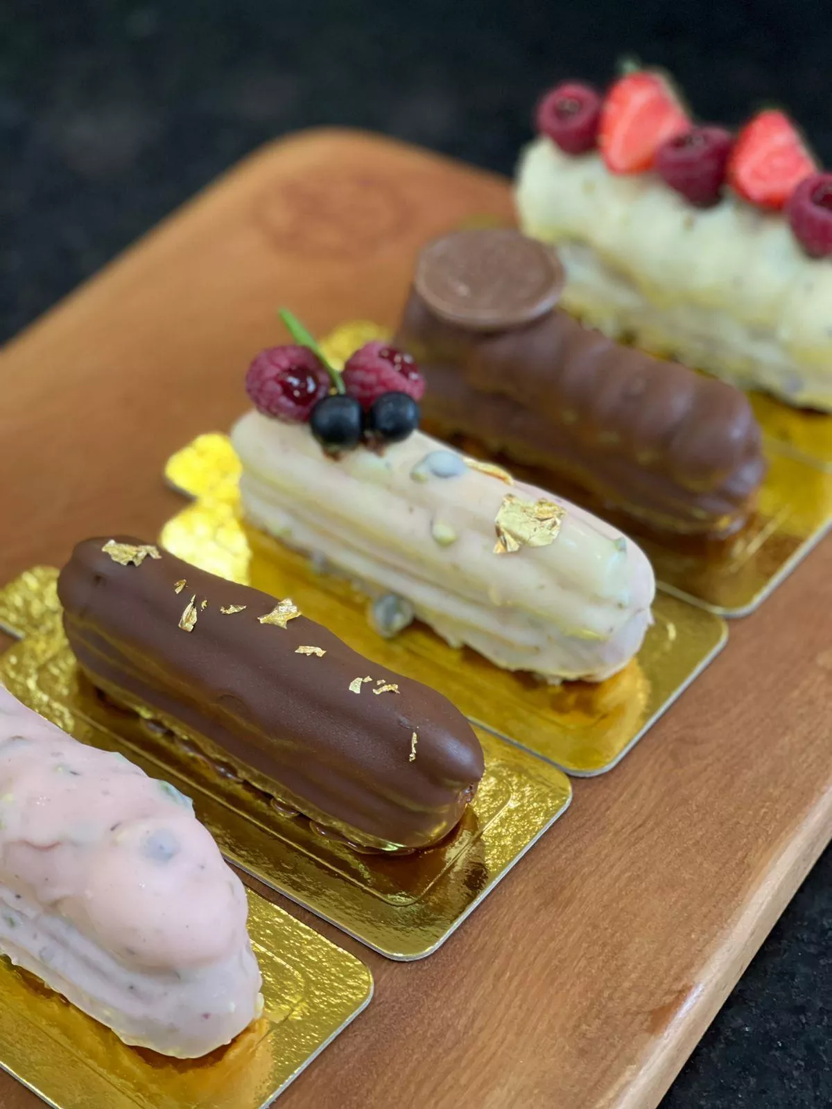Além disso, o curso também ensina acabamentos especiais, como cobertura de chocolate e Éclair Brûlée, trazendo ainda mais sofisticação para suas criações.